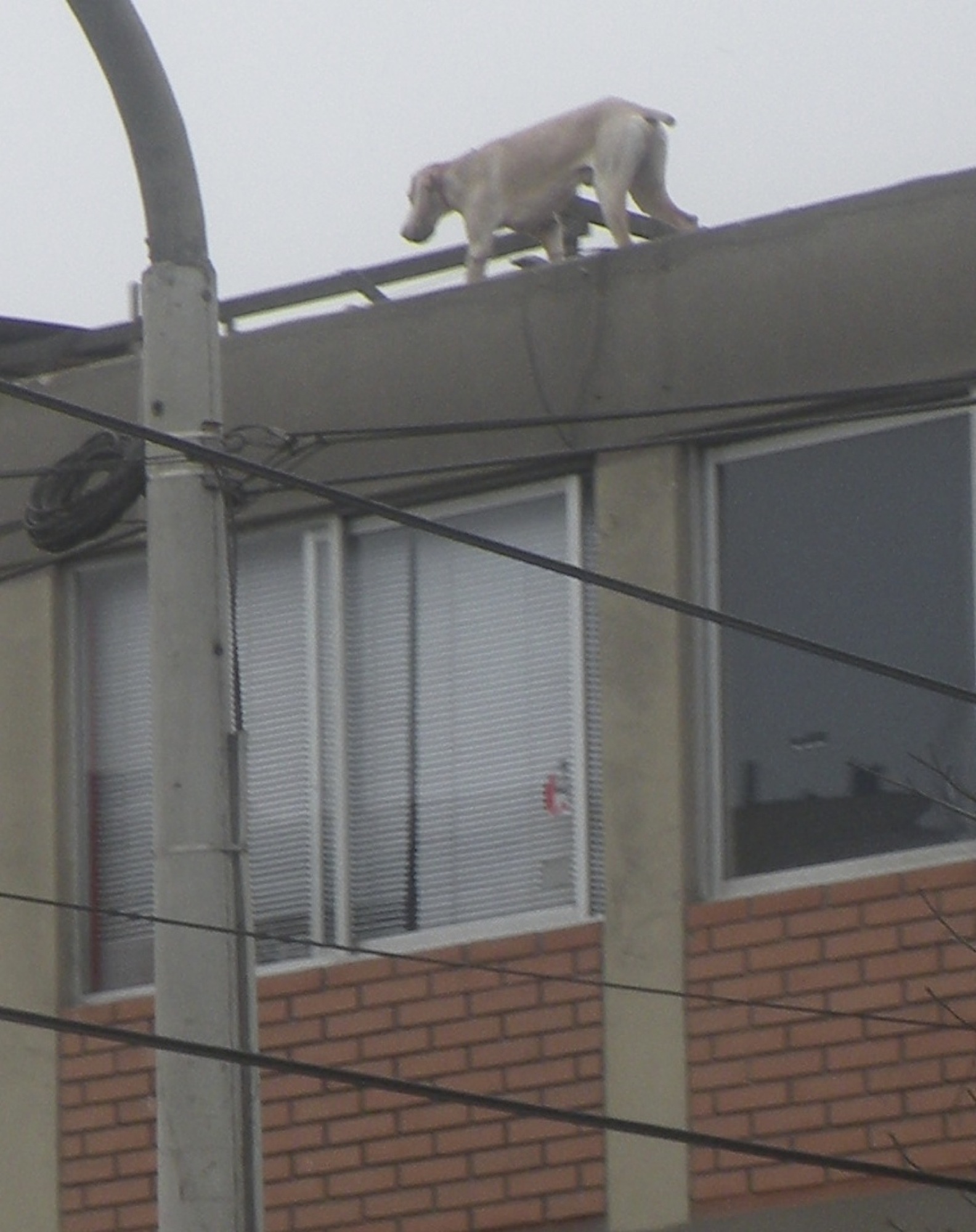 We stopped for a cold drink at a small cafe that also turned out to be a local earthquake shelter. Steve had to try the local drink, Inca Kola. We made a brief stop in Love Park to see the lovely ocean view and the famous kissing statue that is so iconic in Lima. On the way to the airport, we noticed a dog wandering on the roof of a tall building. Wonder how it got there?