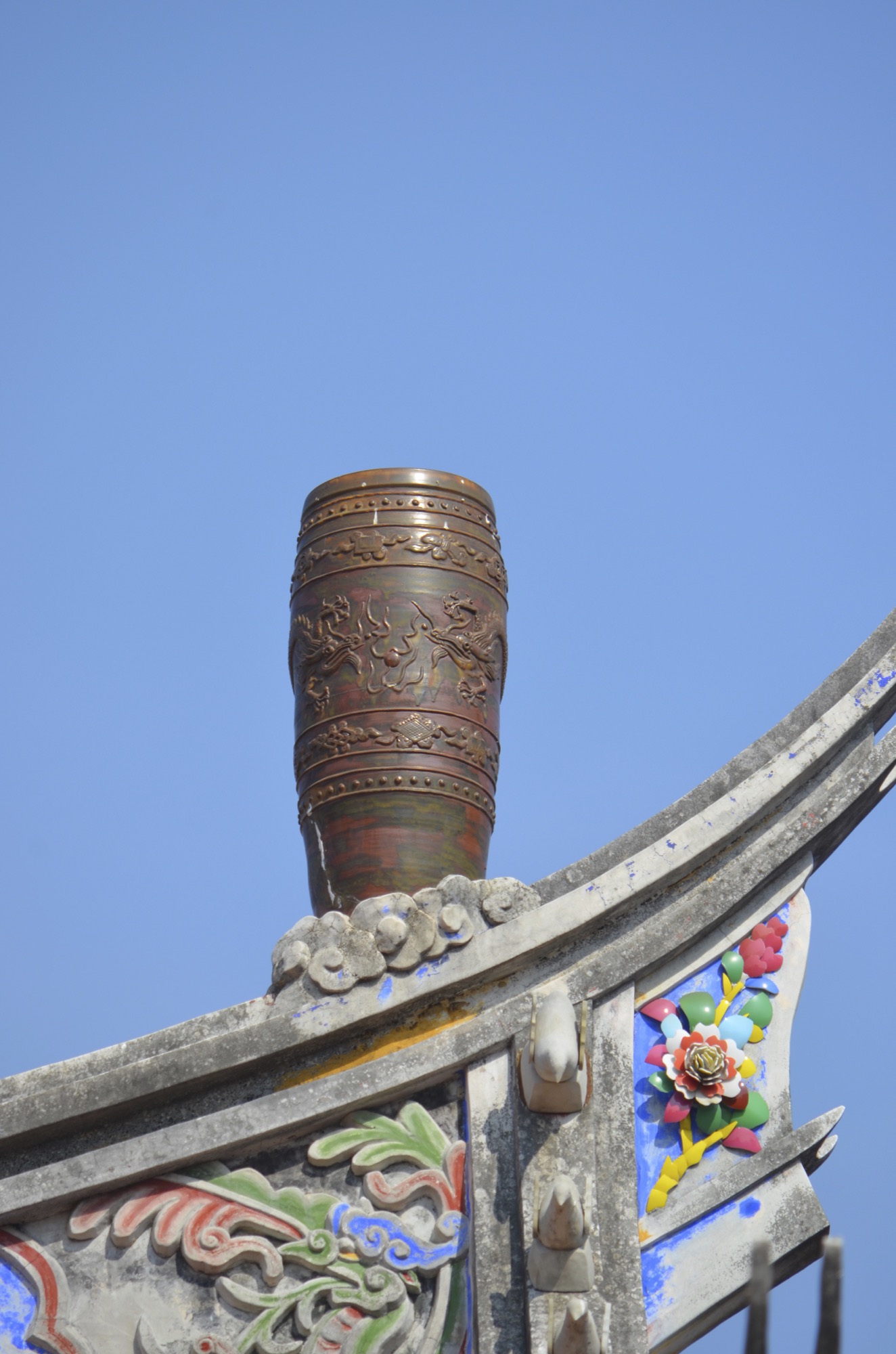 In the very center of the complex is a small building that is the temple itself. Although the building itself was very simple, there were interesting ceramic tiled figures on the roof.