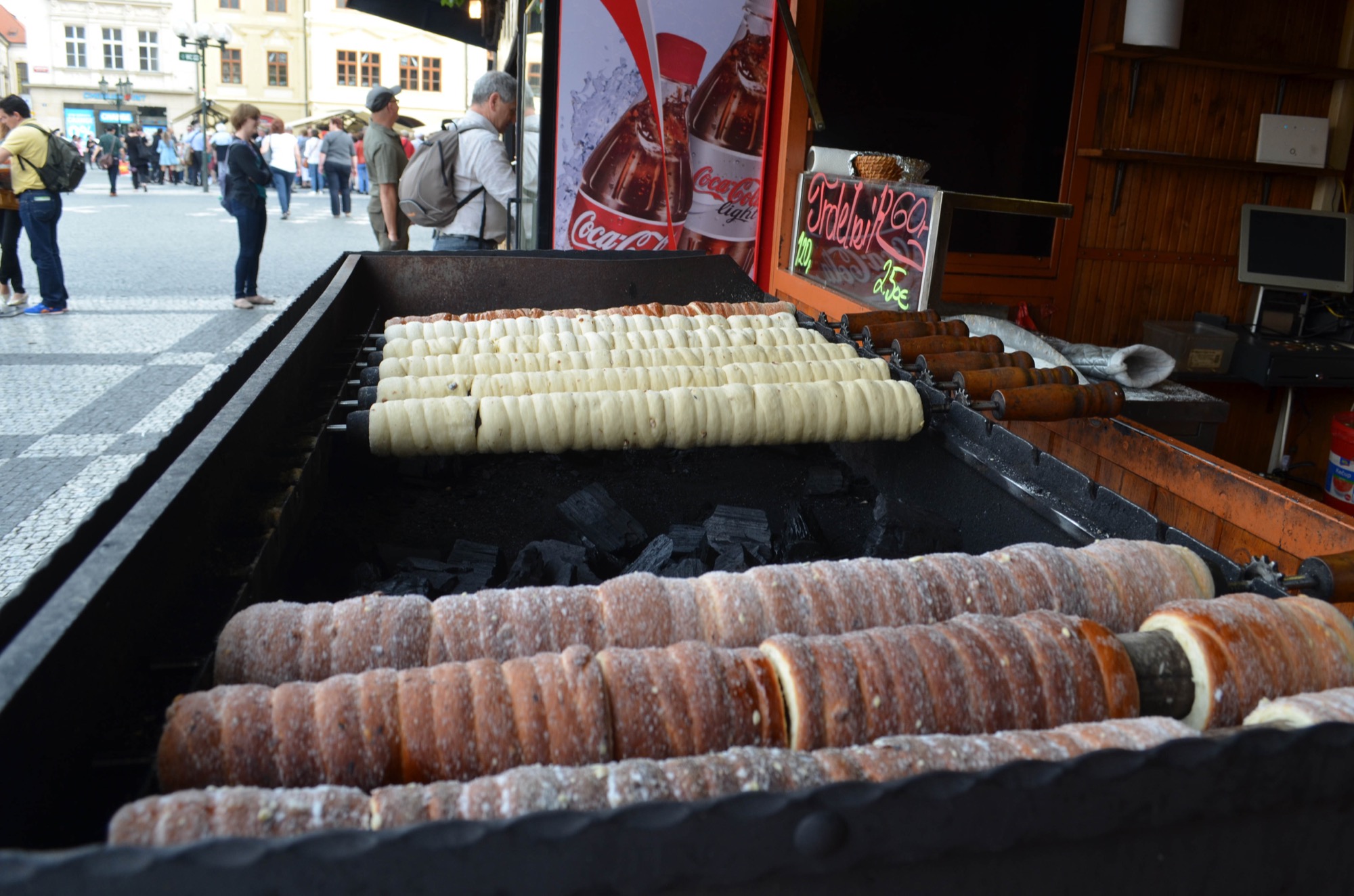 There were lots of street vendors and open air markets in the old town section of Prague. One local delicacy that we saw all over was the trdelnik, or chimney cake, which is made from dough that is wrapped around a stick, grilled, sprinkled with a sugar and walnut mixture, and then filled with ice cream or whipped cream and strawberries.