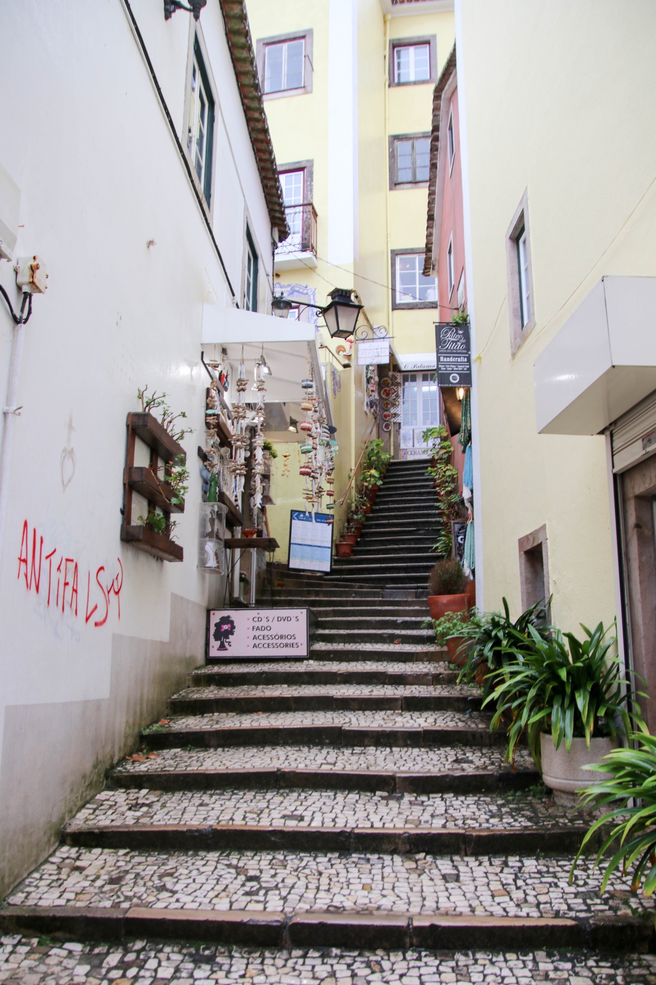 We wandered along the cobblestone streets and poked our heads into many of the quaint shops in this beautiful old town. On the hilltop overlooking the town is the 8th century Castle of the Moors, which was completely hidden by fog during the rainstorm.
