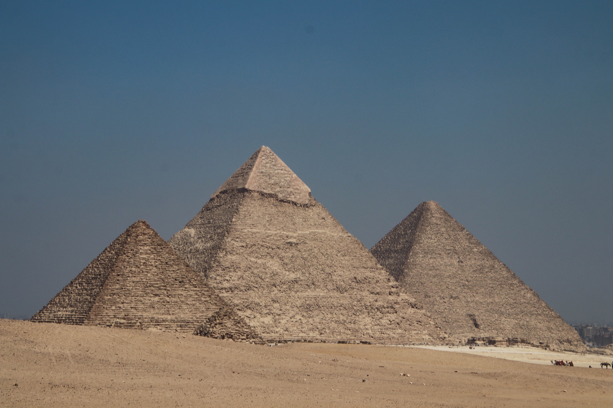 It is interesting to note that the sides of the pyramids are perfectly aligned with the cardinal compass directions. In addition, it is estimated that the Great pyramid of Giza was constructed from about 2.3 million bricks which each weighed about 2.5 tons.